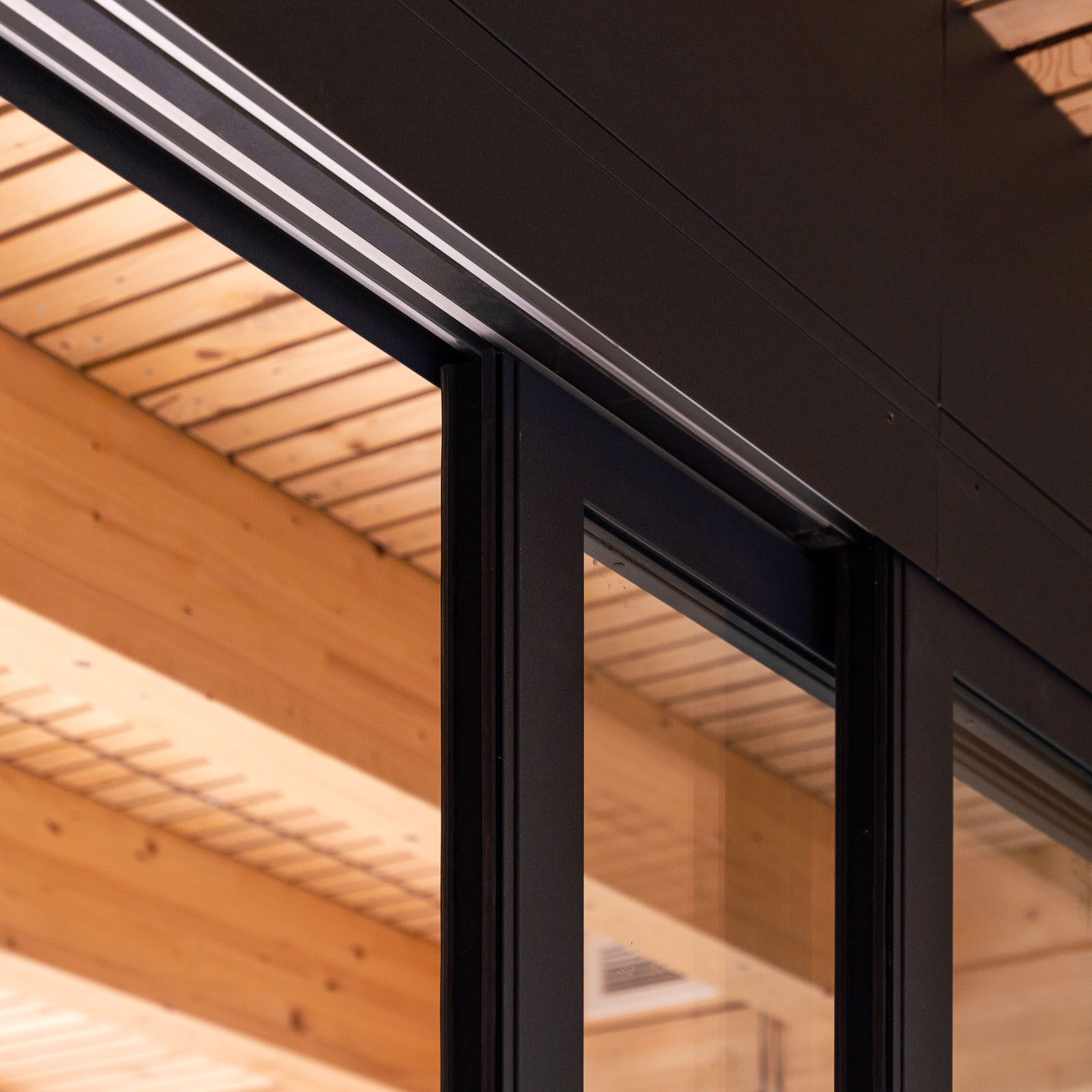 Il sistema a taglio termico OS2 75 AS permette di realizzare porte con apertura ad alzante scorrevole integrandosi in perfetta continuità con i serramenti OS2 75 e 65.